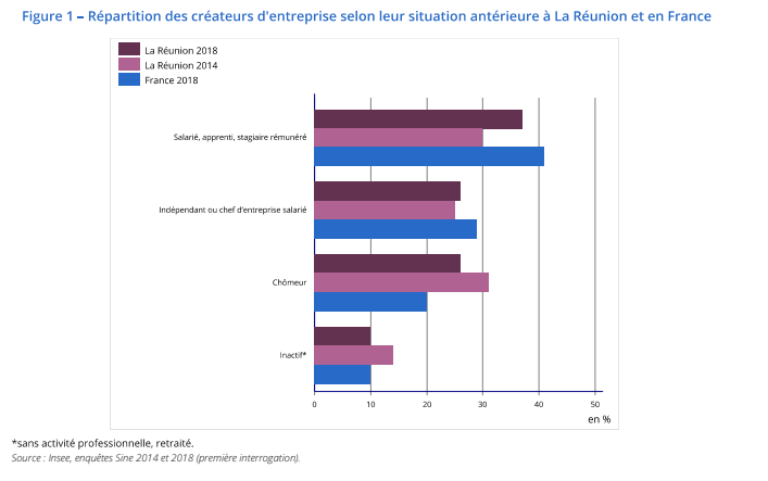 Interrogés avant le début de là pandémie de la Covid-19, les créateurs d'entreprises en 2018 font preuve de davantage d'optimisme sur leurs perspectives d'avenir que ceux de 2014 . À La Réunion, 42 % des créateurs pensent développer fortement leur entreprise, comme au niveau national, contre 34 % en 2014.