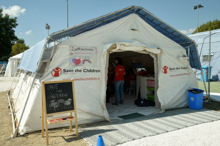 Beaucoup des enfants du bourg ont été envoyés loin, chez des proches et des amis, et d'autres sont encore à l'hôpital. Mais 15 enfants vivent actuellement dans ce camp de tentes aménagé par la protection civile. Sous la grande tente gris clair de Save the Children, les enfants sont chez eux. "C'est un lieu sûr, un lieu protégé, où ils doivent pouvoir aussi trouver un peu de sérénité, plutôt que d'être dehors dans la poussière", explique un bénévole de l'ONG, sans interrompre les activités en cours.