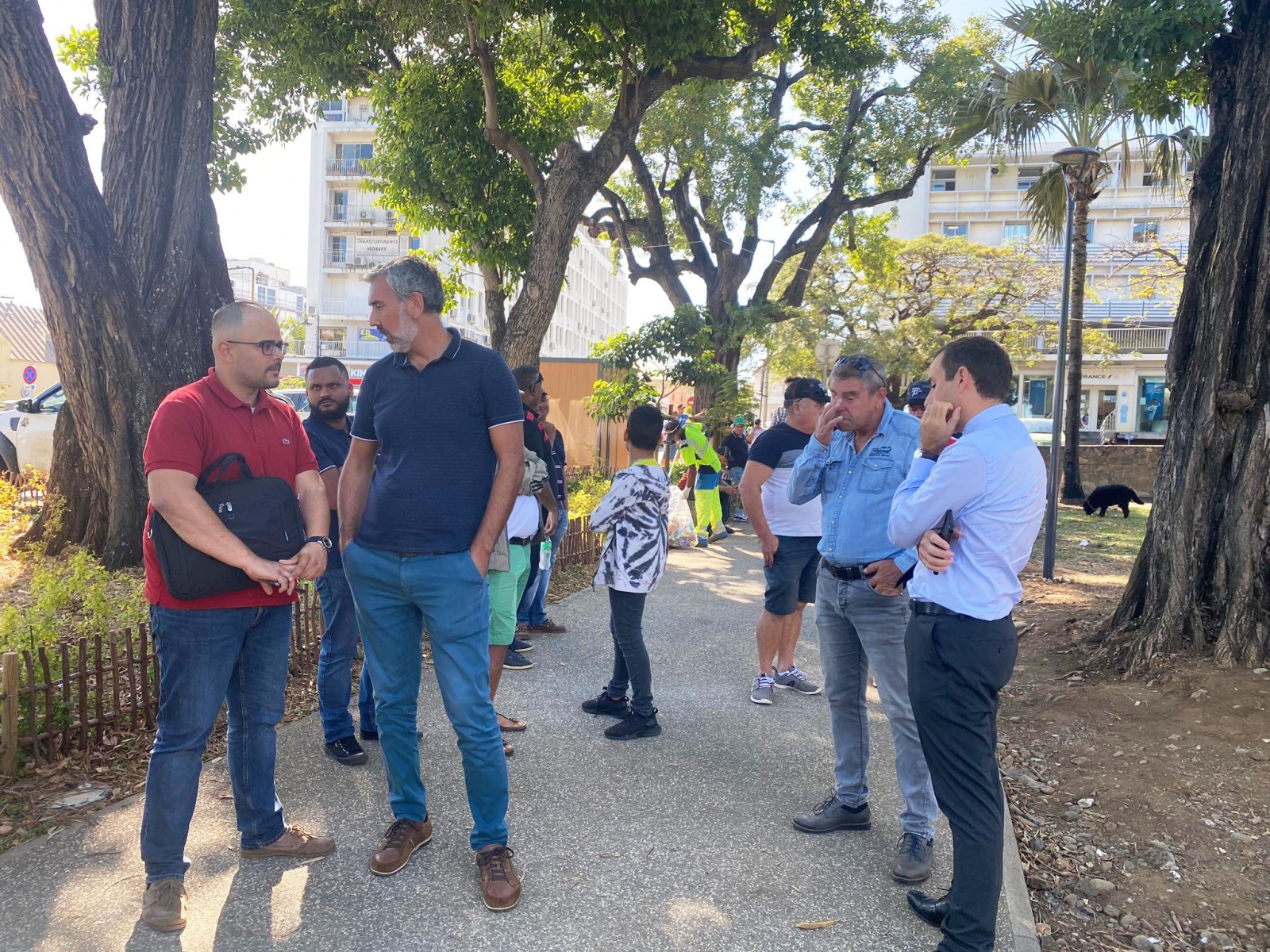 Jean-Michel Moutama, président de la CGPER, et Dominique Gigan, président de l'UPNA, sont sur place. Ils sont accompagnés de plusieurs dizaines de planteurs. En tout, une vingtaine de personnes sont sur place.