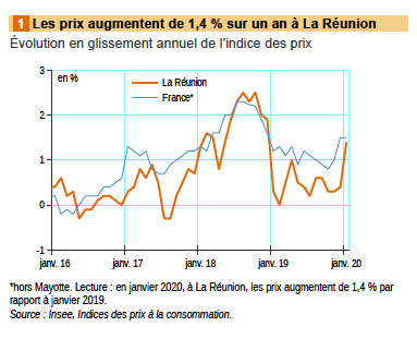 Sur un an, les prix augmentent de 1,4 % à La Réunion et de 1,5 % en France, hors Mayotte.