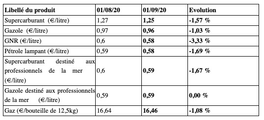 En conséquence, les prix des produits pétroliers et gaziers de La Réunion s’établissent de la façon suivante au 1er septembre 2020 :