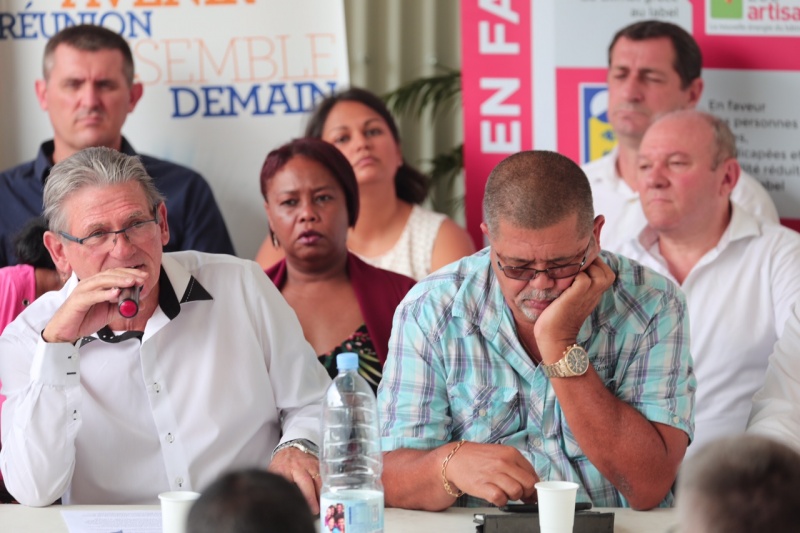 10 h 25 - "Sur cet appel, nous sommes à 100 %. S'il n'y a pas de mouvement social, il n'y a pas de travail. Le moment est bien choisi pour arrêter les licenciements", indique Jacky Balmine, secrétaire géneral de la CGTR BTP aux côtés d'un Bernard Siriex, très attentif à ses propos. Il prévient qu'il y aura d'autres mouvements sociaux si les choses n'avancent pas. D'ailleurs, le 12 septembre, son syndicat, la CGTR, descendra aussi dans la rue pour s'opposer à la loi Travail. Toujours à Saint-Denis.