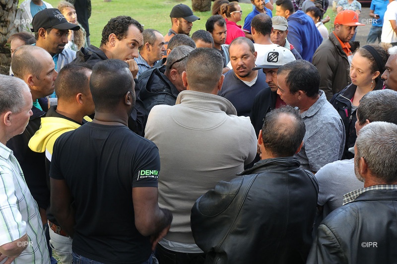 • 15h33 - L'ambiance est détendue devant la préfecture. Les planteurs discutent et plaisantent.