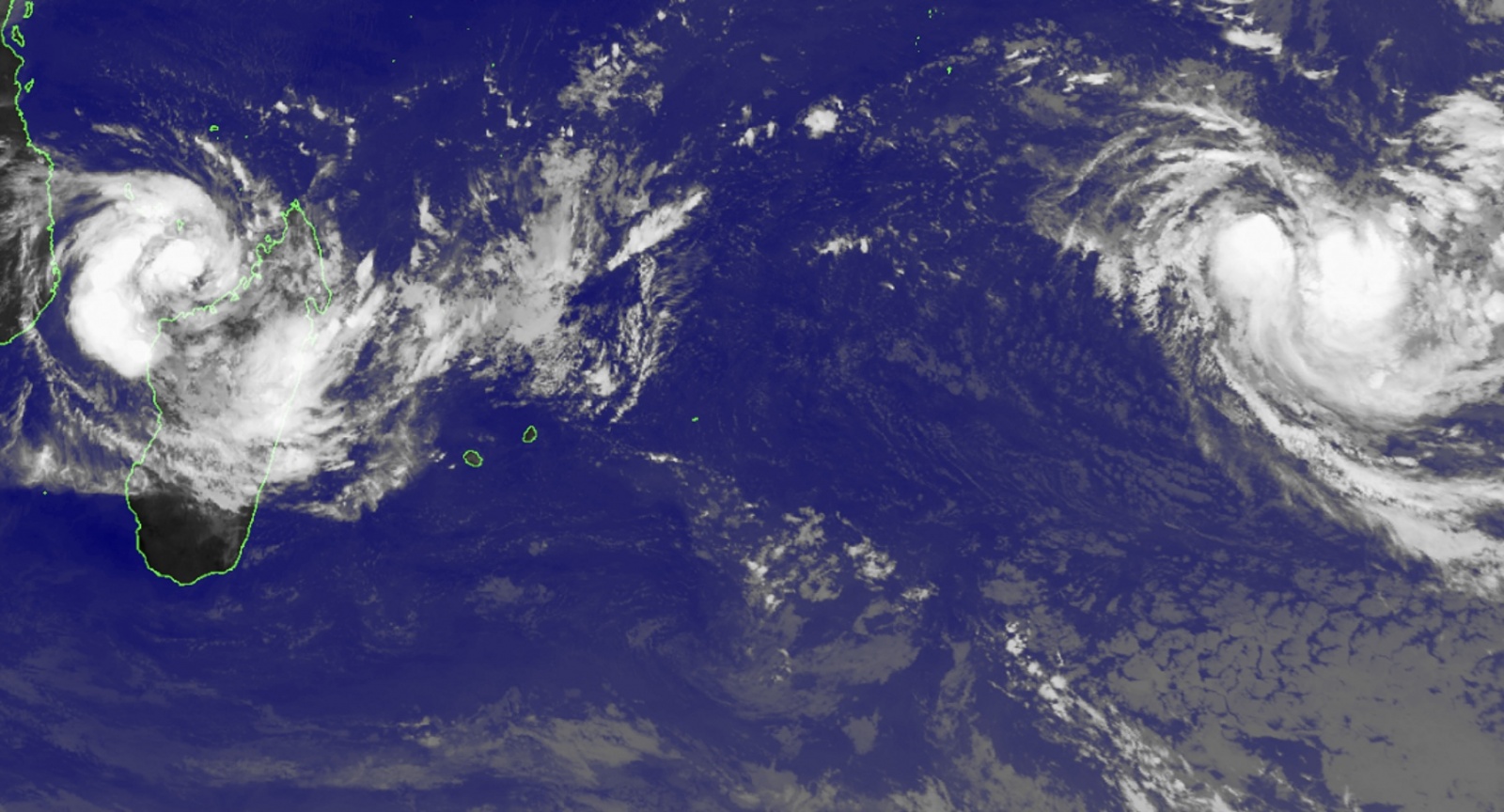 Au cours de la nuit du samedi 8 au dimanche 9 mars 2025, les tempêtes Ivone et Jude ont été baptisées, respectivement par le service météorologique mauricien et le service météorologique malgache. Ivone, située à l'extrême-est du bassin ne présente aucune menace pour les terres habitées. Jude, qui apporte de fortes pluies à Mayotte, devrait continuer de s'intensifier et toucher terre au Mozambique
