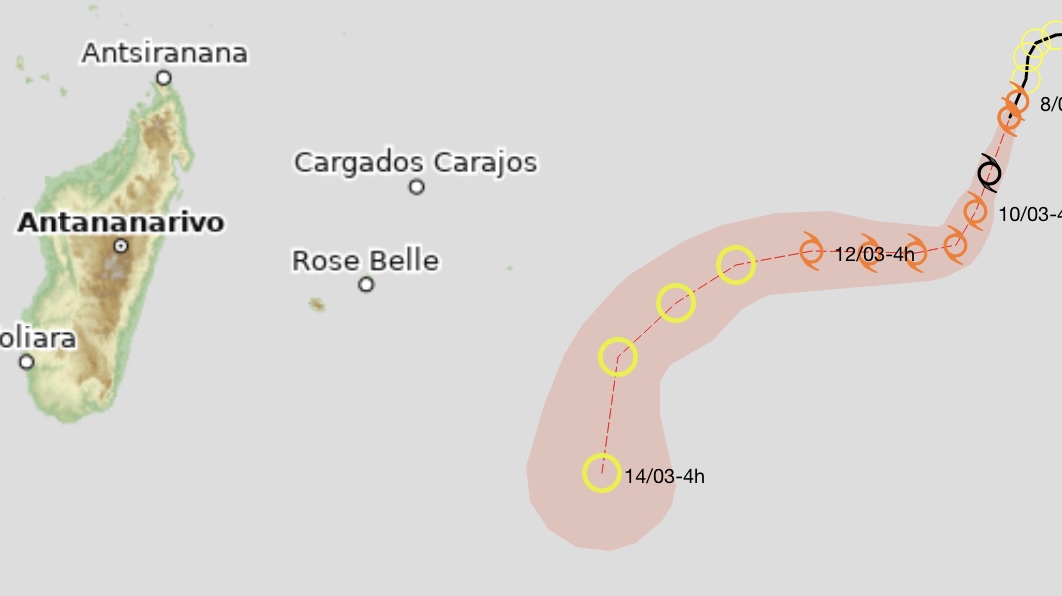 "Pour le moment, l'intensité de Ivone n'évolue pas mais au cours des prochaines 24h, ce système devrait bénéficier d'un environnement favorable à une légère intensification. Il pourrait donc atteindre le stade de forte tempête tropicale, en se déplaçant vers le Sud-Sud-Ouest", détaille Météo France.