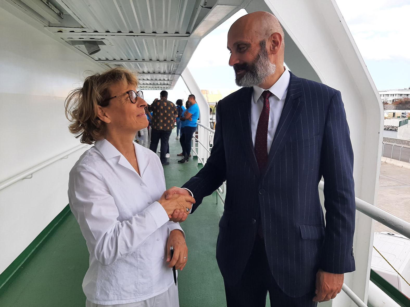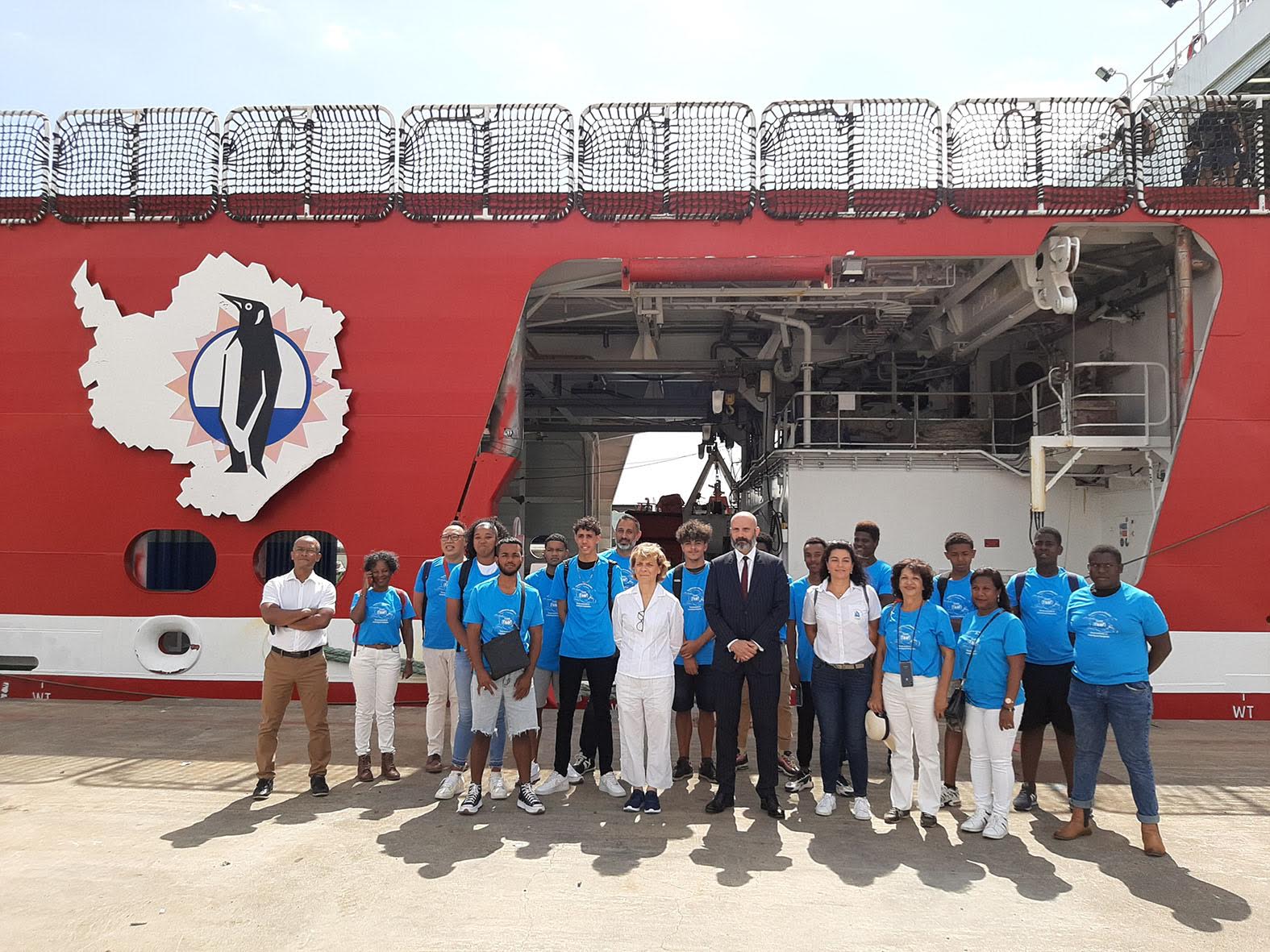 Jeudi 13 octobre, M. Charles Gisuti, préfet, administrateur supérieur des TAAF et Mme Chantal Manès- Bonnisseau, rectrice de l’académie de La Réunion, accompagnaient les élèves du CAP Maritime du Lycée professionnel Léon de Lepervanche du Port lors d’une visite du navire océanographique affrété par la Société des Expéditions de Monaco, le S.A. Agulhas II.
