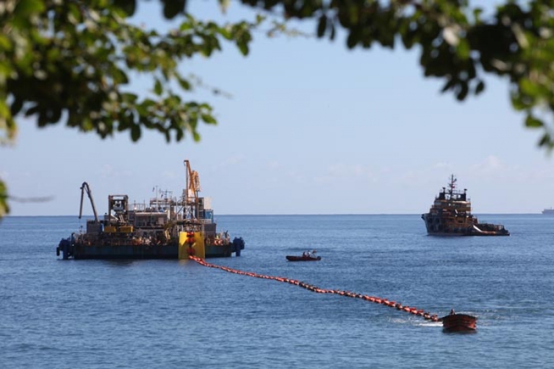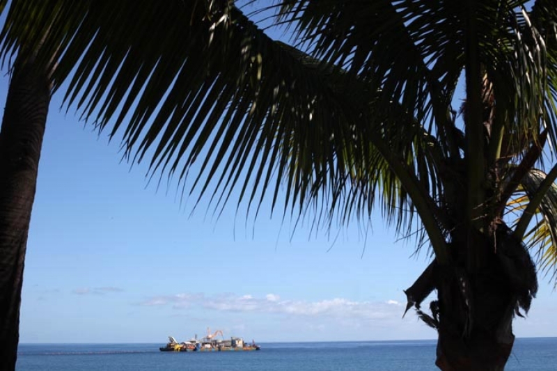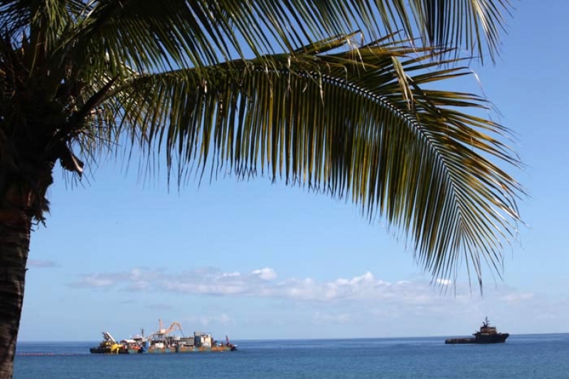 D'une longueur de 35 km pour un poids de 2 100 tonnes, le câble sous-marin est déroulé, depuis ce lundi matin, à partir d'une barge spéciale à 3km au large des côtes réunionnaises, plus précisément au niveau de l'estuaire de la Rivière de Saint-Denis.Récupéré par des plongeurs, il est ensuite accroché à un autre câble métallique destiné à être tiré jusqu'à La Possession. La nouvelle ligne haute tension est ensuite enfouie, à l'aide d'un robot, à une centaine de mètres de profondeur sous le sable.