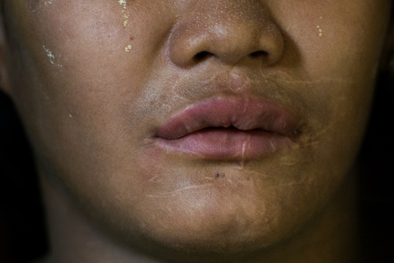 L'adolescente birmane a le visage couvert de cicatrices, traces des coups de chaînes de vélo infligés par sa famille adoptive.