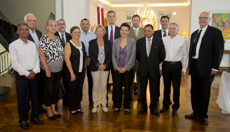 Le préfet de La Réunion Dominique Sorain et Marc Abadie, directeur du réseau et des territoires de la Caisse des Dépôts, ont signé ce mardi 6 octobre 2015 une convention de partenariat local pour "Encourager et soutenir l'embauche du premier salarié à La Réunion". Un objectif de 405 premiers emplois de plus de 6 mois crées a été retenu pour l'année 2015. (photo D.R.)