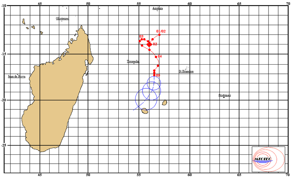 - Position à 16h00 : 17.5 Sud / 57.0 Est
