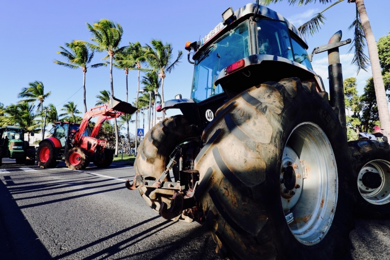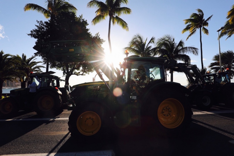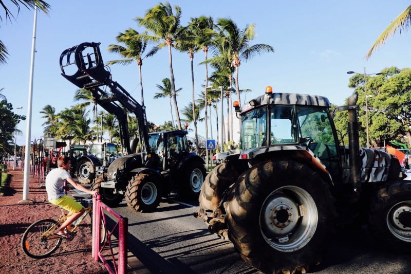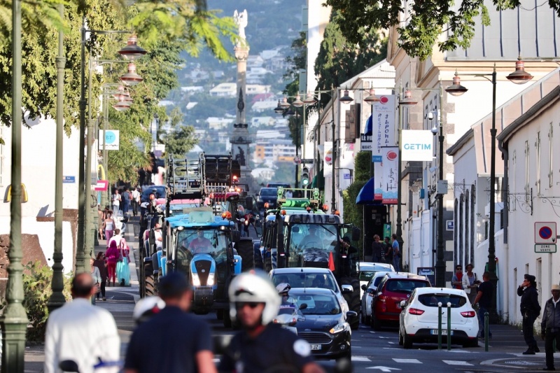 • 14h18 - Le convoi de tracteurs est actuellement du côté du pôle Océan et aura pour dernier arrêt l'hôtel de ville de Saint-Denis. Les planteurs souhaitent rencontrer le maire ou un élu de la mairie.