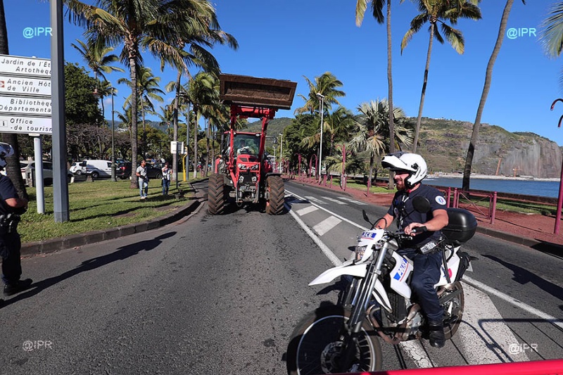 • 16h44 - Les planteurs ont regagné les jardins de la Préfecture. Un tracteur, en travers de la chaussée, bloque toujours la circulation sur le Barachois.