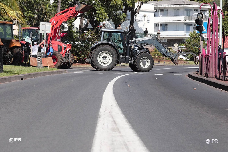 • 11h01 - Les planteurs bloquent à nouveau la circulation au Barachois. Un tracteur s'est mis en travers de la chaussée et empêche la circulation, en face de la préfecture depuis une trentaine de minutes. Cependant, les manifestants laissent passer les gros camions qui ne peuvent pas emprunter les déviations mises en place.