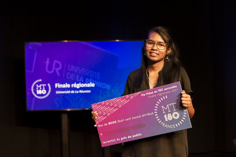• Miangaly Rasamoelina, du laboratoire PIMENT, remporte quant à elle le prix du public. Sa thèse porte sur la modélisation prospective de la production électrique des îles du sud-ouest de l'océan Indien.