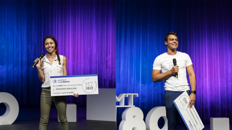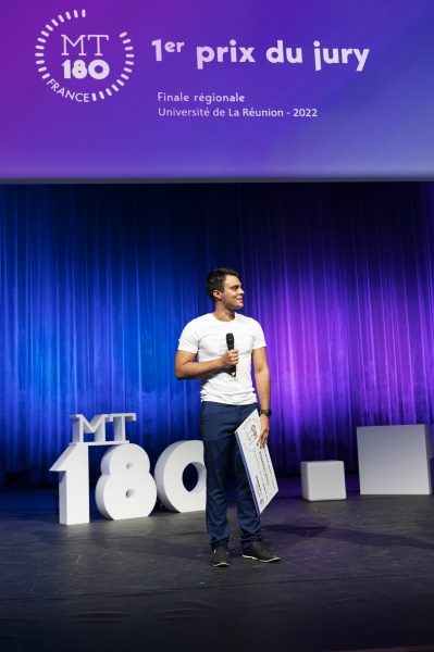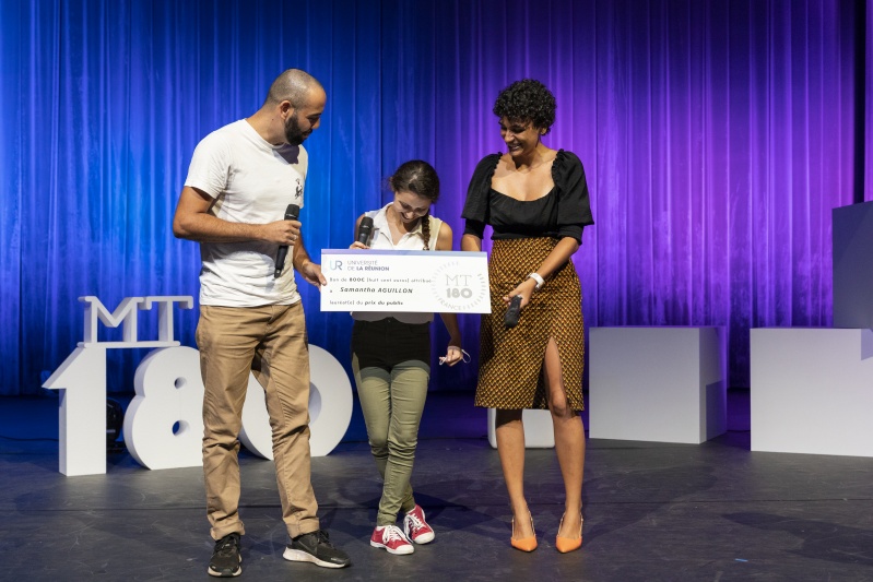La 7ème édition du concours Ma thèse en 180 secondes s'est tenue ce vendredi 11 mars 2022 dans la soirée. Sur la scène de l'amphithéâtre bioclimatique du campus du Moufia, deux doctorants se sont distingués et représenteront La Réunion lors de la demi-finale de ce concours national à Paris. Nous publions ici le communiqué de l'Université. (Photos : Université)