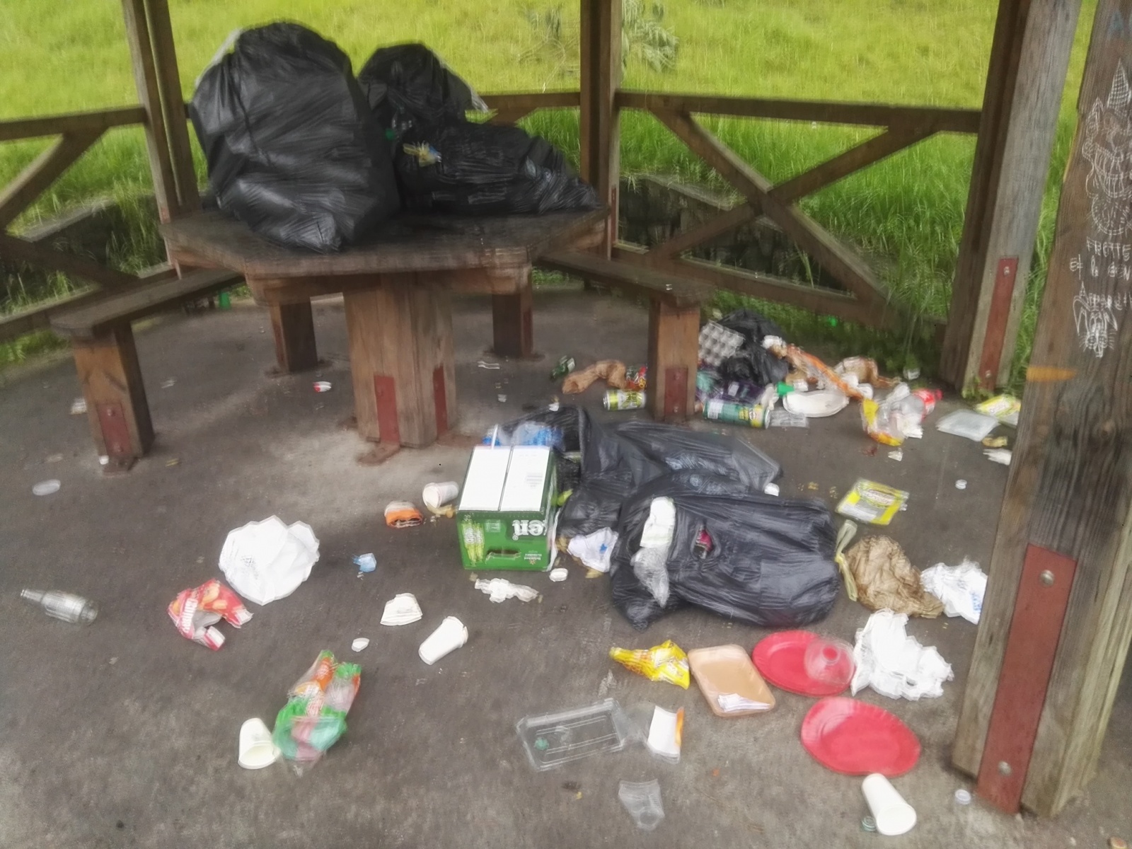 Plusieurs photos d'un kiosque au Maïdo rempli d'ordures font le tour de plusieurs groupes Facebook. On y aperçoit plusieurs sacs poubelles pleins, laissés sur la table du kiosque et de nombreux déchets - en grande partie alimentaires, en carton ou en plastique - jonchant le sol. Une honte, fustigent les internautes qui partagent ces images et s'offusquent de voir si peu de respect en pleine nature.