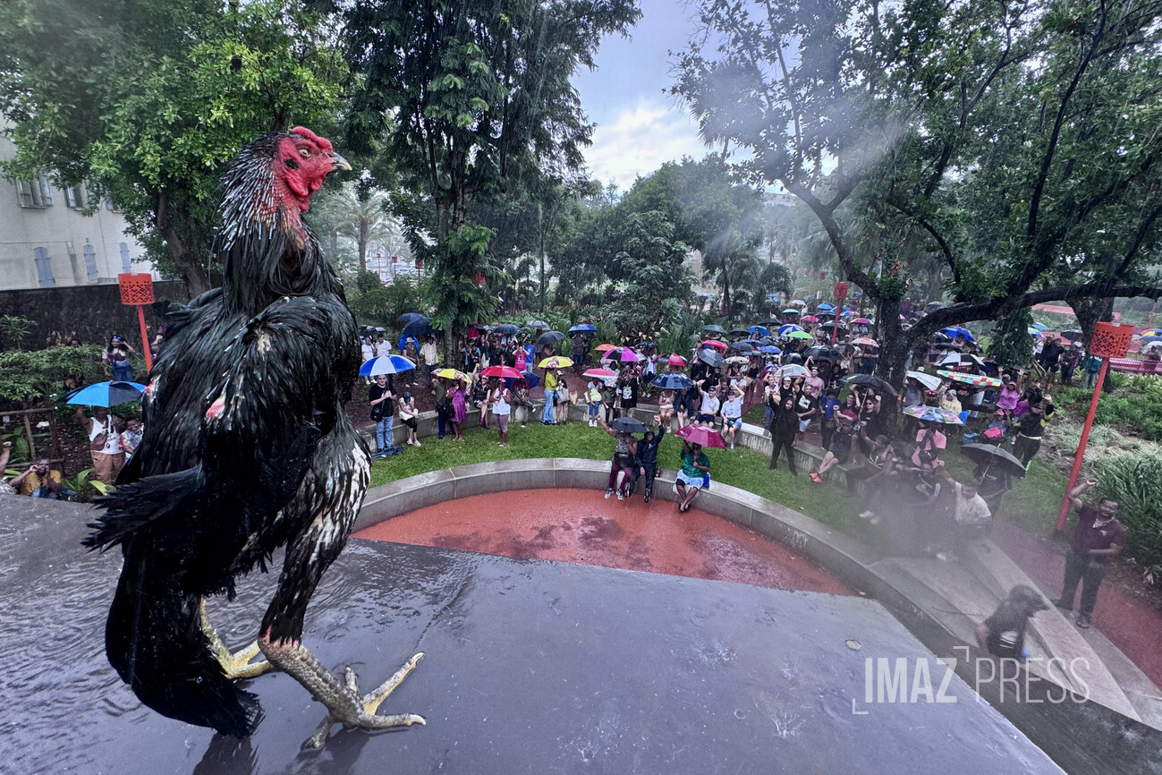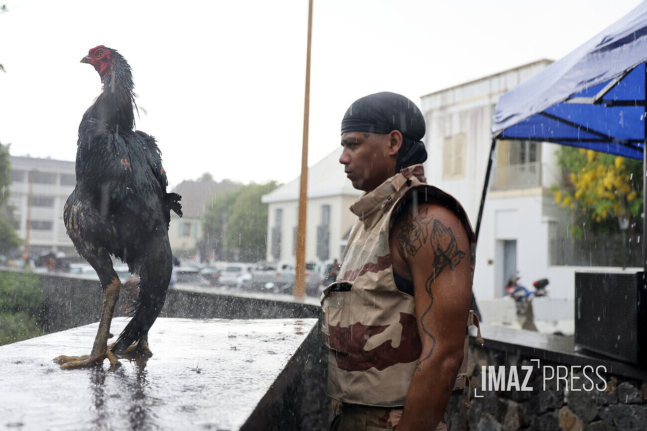 Cocorico ! Le cri, reconnaissable entre mille, a été lancé par Koko lo kok ce samedi après-midi 8 février 2025 à Saint-Denis. Dans les jardins de la préfecture. Quasiment sous les fenêtres de Patrice Latron, ci-devant préfet de La Réunion. C'est que Koko lo kok pensait prendre part à un grand spectacle avec gros son lancé à fond, synthé déchaînés et dance floor blindé. Ce n'était pas (tout à fait) le cas (Photo RB et Sly www.imazpress.com / redac@imazpress.com)