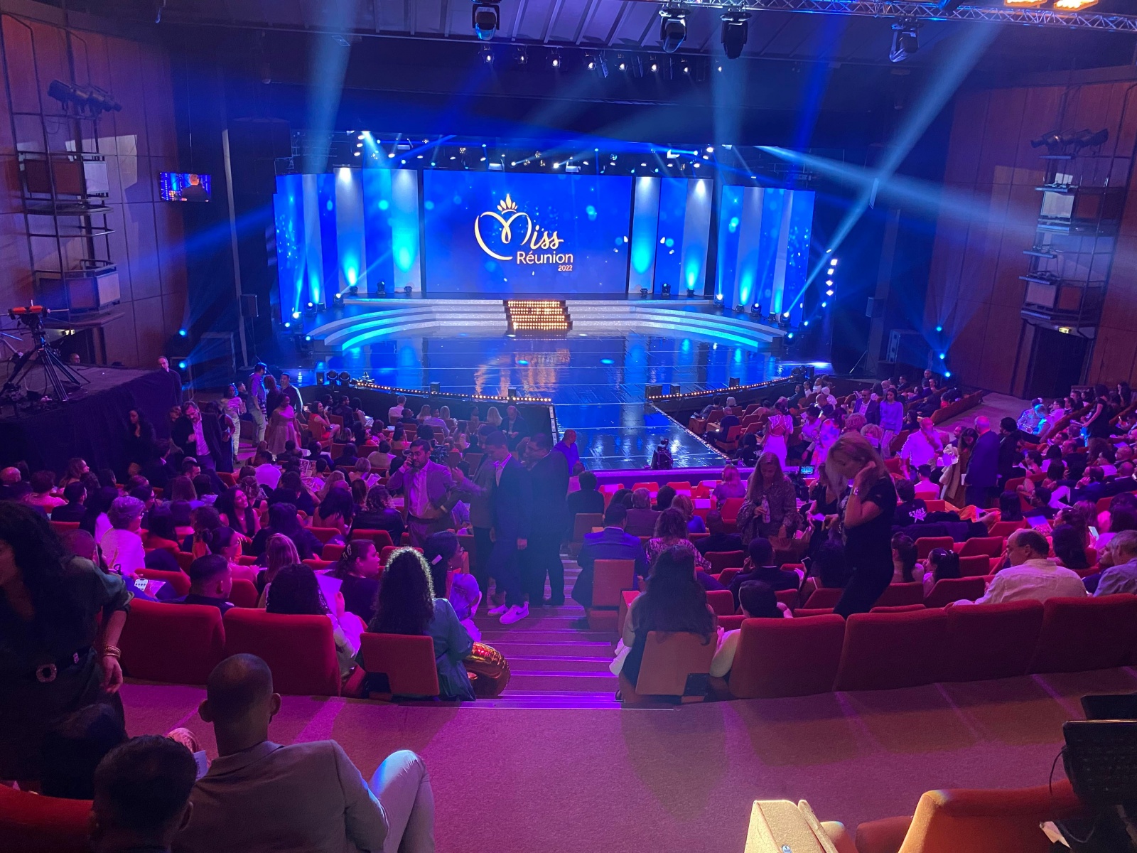 Dans une vingtaine de minutes la scène de théatre de Champ Fleuri, sombre pour le moment, va s'illuminer et le spectacle va commencer. La salle est déjà quasiment pleine. Regardez
