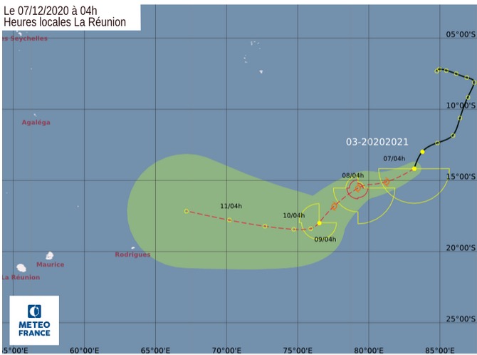 Le centre météorologique mauricien a baptisé ce lundi matin 7 décembre la deuxième tempête de la saison Bongoyo. Il s'agit pour l'heure d'une tempête tropicale modérée, qui devrait largement s'affaiblir à son approche de Rodrigues. La tempête se trouve actuellement à 2090 km de la région autonome mauricienne et se dirige vers l'ouest-sud-ouest à 20km/h. (Photo Mtotec)