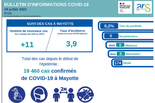 La situation sanitaire à Mayotte reste stable cette semaine, avec 11 nouveaux de Covid-19 confirmés du 10 au 16 juillet 2021. Le taux d'incidence reste extrêmement bas, avec 3,9 cas pour 100.000 habitants. Le taux de positivité est à 0,2 %, aucune personne est hospitalisée actuellement en raison du virus. (Photo d'illustration rb/www.ipreunion.com)