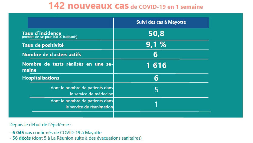A Mayotte entre le samedi 26 décembre 2020 et le vendredi 1er janvier 2021 personne âgée de 83 ans est décédée des suites de la Covid-19. Au cours de la même période 142 nouvelles contaminations ont été recensées par les autorités de santé de l'île aux parfums. Depuis le début de l'épidémie 56 personnes sont décédées et 6.045 ont été contaminées à Mayotte (Photo d'illustration rb/www.ipreunion.com)