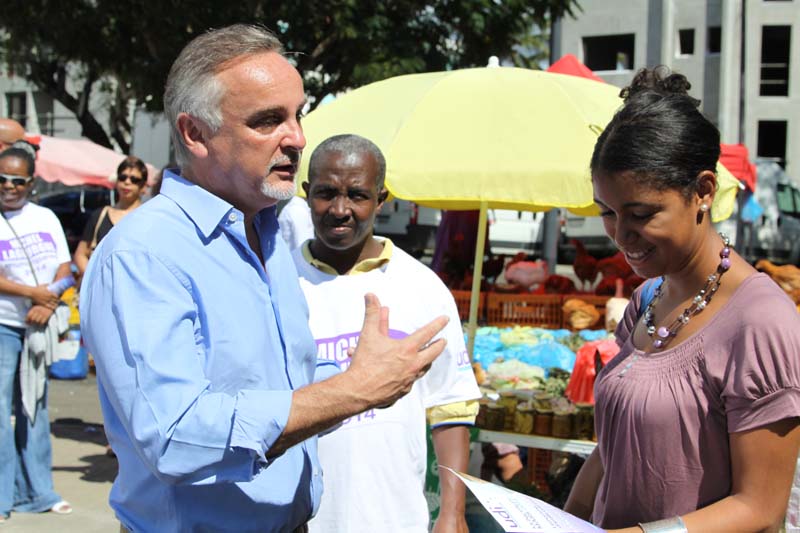 Michel Lagourgue, candidat UDI aux municipales de 2014 à Saint-Denis, s'est rendu ce dimanche 25 août 2013 au marché du Chaudron à Saint-Denis. Accompagné d'une quarantaine de militants, il est allé à la rencontre des bazardiers, mais aussi des clients. À noter que, de leur côté, les membres du comité de soutien de Michel Lagourgue ont également recueilli plusieurs centaines de signatures.