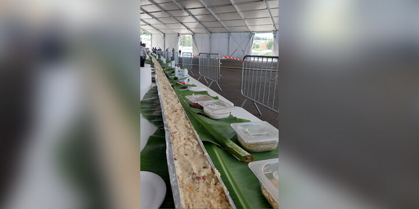 Ce dimanche 15 janvier 2023, le record du monde du plus long riz au lait a été battu au Miel Vert, au Tampon. Ce riz au lait mesure 49,88 mètres de long. Il a été présenté par le chef Patrick Firoaguer. Comme le précise la ville du Tampon dans un communiqué, ce dessert est présenté en offrande ce jour lors de la fête en l'honneur des agriculteurs et des vaches. (Photo : ville du Tampon)