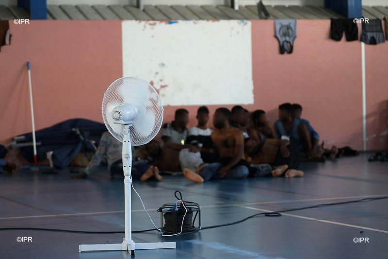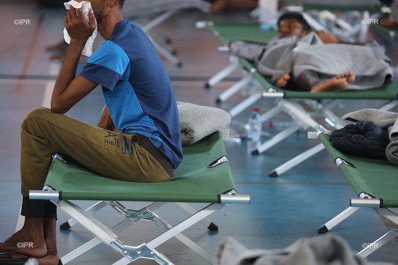 Couchés sur le sol du gymnase, à quelques mètres du précieux ventilateur, les deux hommes, sri-lankais, ont le sourire. Ils ne se connaissaient pas avant de prendre le bateau en Indonésie. Ils ont fait connaissance pendant le trajet. Thisal est passé par Singapour avant d’arriver en Indonésie, Diham par la Thaïlande. Tous les deux ont des cicatrices sur les bras.