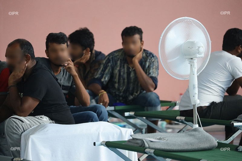 Ils sont 120, dont neuf femmes et 13 enfants. Arrivés samedi 13 avril 2019 dans le port de Sainte-Rose, ils seraient tous Sri-lankais. Leur bateau est parti d'Indonésie. Près de 7.000 kilomètres parcourus en 17 jours, sous un soleil de plomb, pour fuir les persécutions ou tout simplement dans l'espoir de trouver une vie meilleure. Aujourd'hui, ils sont hébergés à Sainte-Marie, dans un gymnase, transformé par arrêté préfectoral en zone d'attente. (Photo : RB/Imaz Press Réunion)