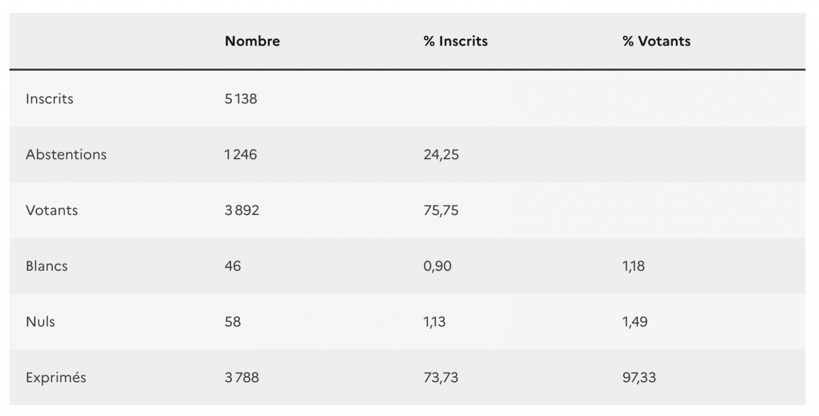 Le taux d'abstention au 1er tour était de 28,38 %.