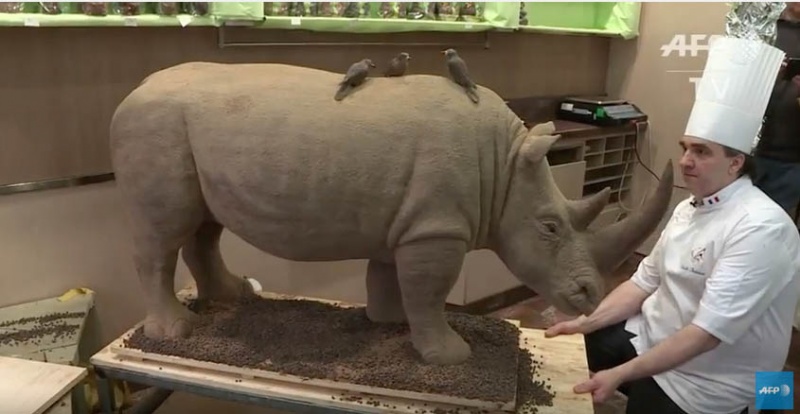 Une sculpture en chocolat en hommage à Vince, un rhino blanc abattu pour voler sa corne #AFP pic.twitter.com/XidTt0ulNk