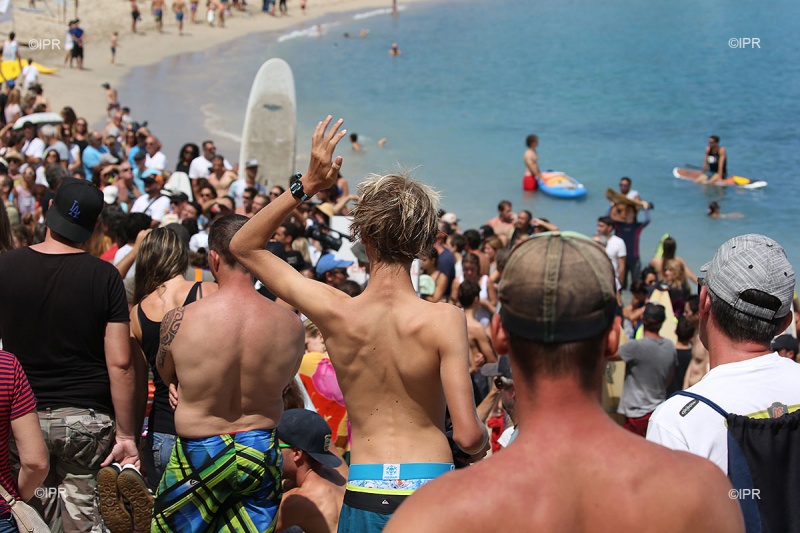 • 10h47 - Les usagers à l'eau forment une hola à quelques dizaines de mètres du rivage, depuis leurs planches ou embarcations.