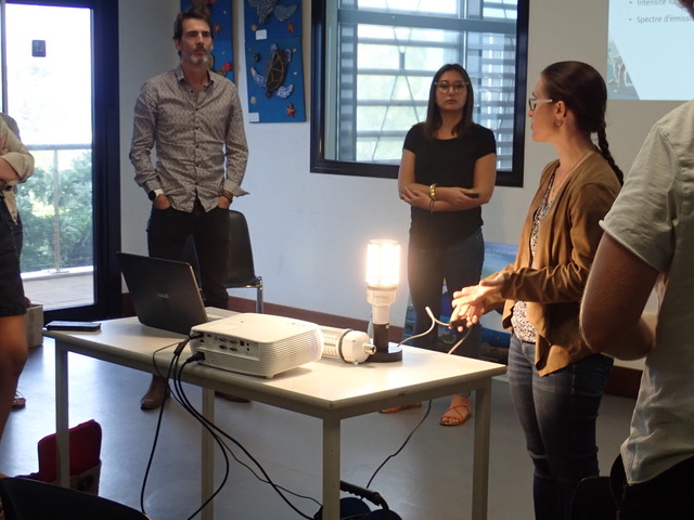 Pauline et Marie du CEDTM (Centre d'Etude et de Découverte des Tortues Marines) ont présenté les résultats de l'étude sur la pollution lumineuse des littoraux Ouest et Sud de l'île à Kélonia. Objectif : sensibiliser les acteurs du tourisme à l'impact de l'éclairage du littoral sur les tortues marines. Nous publions ici le communiqué de Kélonia (Photos Kélonia)