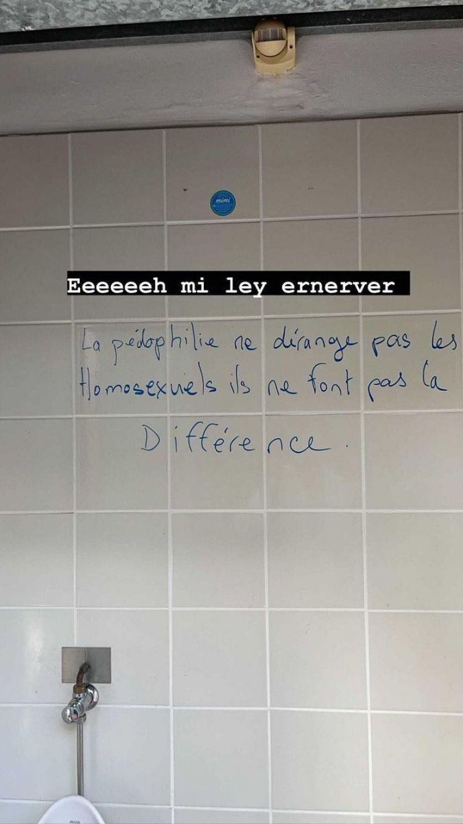 Une troisième photo nous a été envoyée par Brandon Gercara, militant.e LGBTQI+, plus tard dans la journée. Le même tag a été écrit sur un autre mur de Saint-Denis.