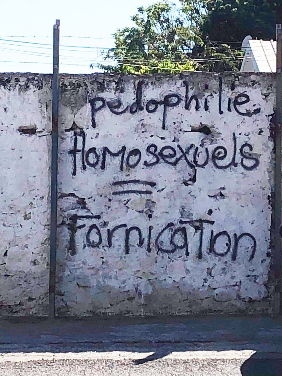 De nouvelles inscriptions à caractère homophobe ont été aperçues à Saint-Denis, notamment sur le mur du Grand marché, et à l'Hermitage, dans des toilettes publiques. A chaque fois, les mêmes tournures, accusant les personnes homosexuelles d'être pédophiles. Une pancarte homophobe avait également été installée sur les grilles de l'ancien hôtel de ville de Saint-Denis dans la semaine. L'association Requeer va porter plainte. (Photo d'illustration rb/www.ipreunion.com)