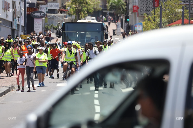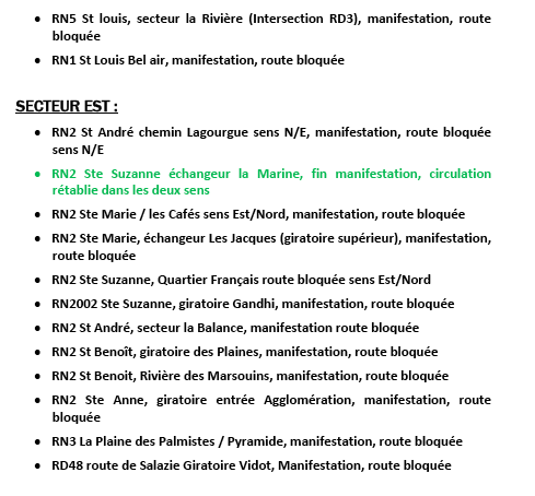 RN1 St Paul, giratoire Savanna, manifestation, route bloquée