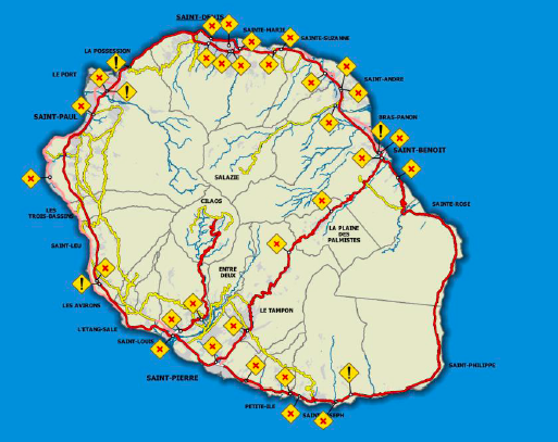 RN2 Ste Suzanne, Quartier Français route bloquée sens Est/Nord