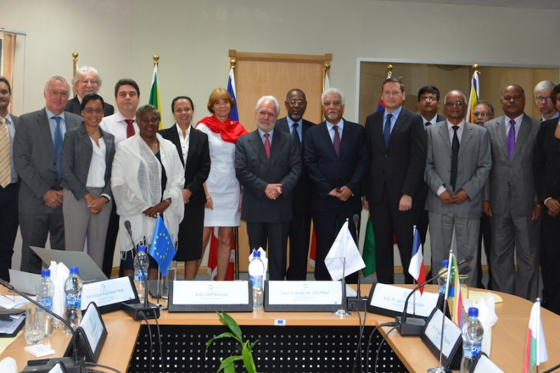 Les représentants des états membres de la Commission de l'océan Indien (COI), de l'association Iles Vanille et du secteur privé se sont réunis ce mardi 16 juin 2015 au siège de l'organisation. Ils ont adopté une feuille de route visant à mettre en oeuvre une stratégie régionale de coopération touristique présentée par la COI avec le soutien de l'Union européenne. Deux priorités ont été identifiées : établir des normes de qualité notamment pour l'hébergement et harmoniser la formation professionnelle aux médias du tourisme. (photo D.R.)