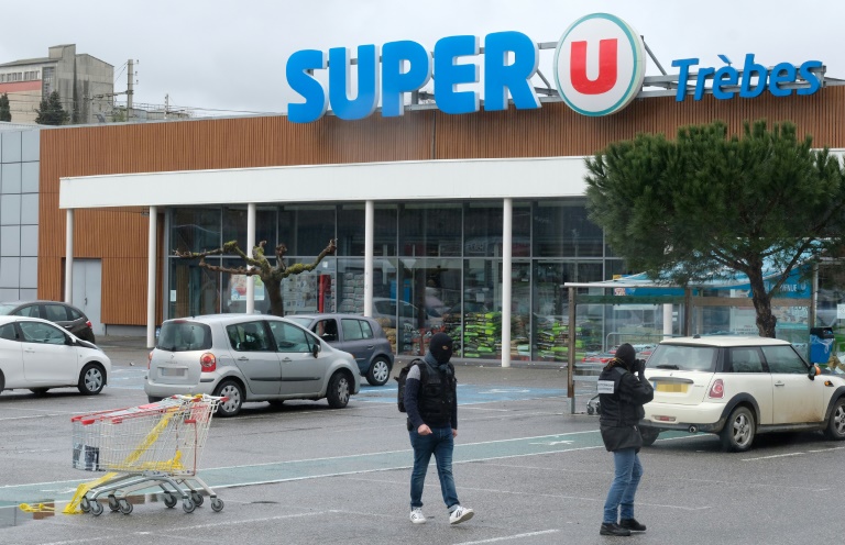 Samedi matin, le magasin Super U de Trèbes situé dans une zone d'activité était fermée. Quelques voitures et camionnettes stationnaient encore sur le parking de l'hypermarché, entouré d'un ruban jaune et dont l'accès, interdit au public, était contrôlé par deux gendarmes, ont constaté des journalistes de l'AFP.