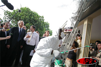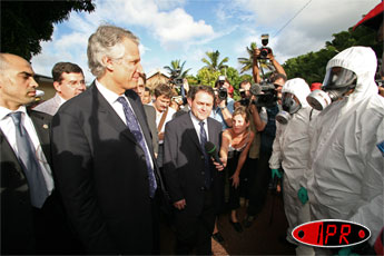 Le Premier ministre a passé ce dimanche après-midi 26 février 2006 dans l'Est de l'île. Après une visite au PC de crise de la sous-préfecture de Saint-Benoît, à la clinique de la ville et une réunion avec les personnels de santé, il s'est rendu à Bras Panon pour assister à une opération de démoustication menée par les employés communaux et les militaires. Il est allé saluer chez eux plusieurs habitants du quartier (voir aussi en rubrique "actualités")