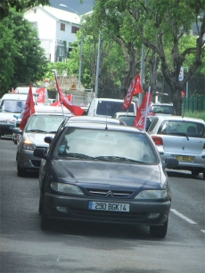 La cinquantaine de voitures roulant au pas est arrivée au centre-ville de Saint-Denis vendredi 25 février 2011 vers midi. Cette opération escargot s'est faite à l'appel de la section CGTR d'EDF qui réclame un alignement des salaires des agents sur ceux de la fonction publique d'Etat. Si la situation est " critique ", EDF ne prévoit pas encore de délestage.