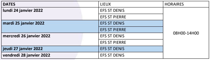 Pour prendre rendez-vous, vous pouvez vous rediriger vers le site de l'EFS Réunion.