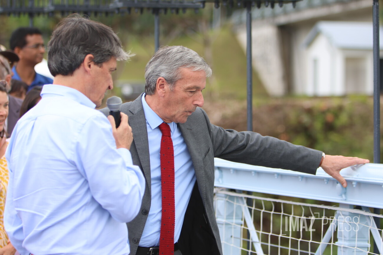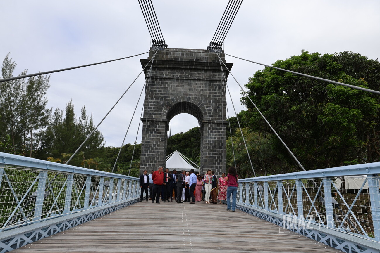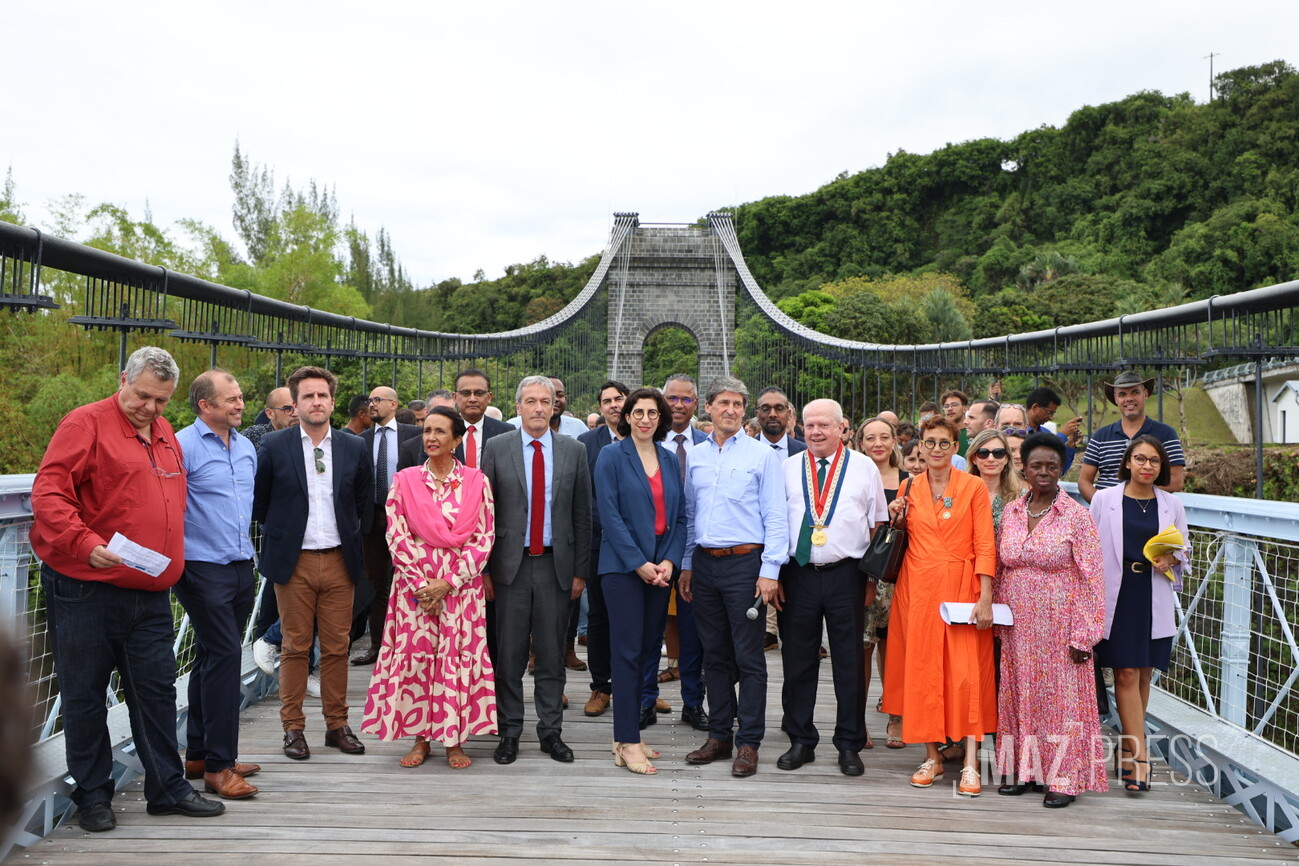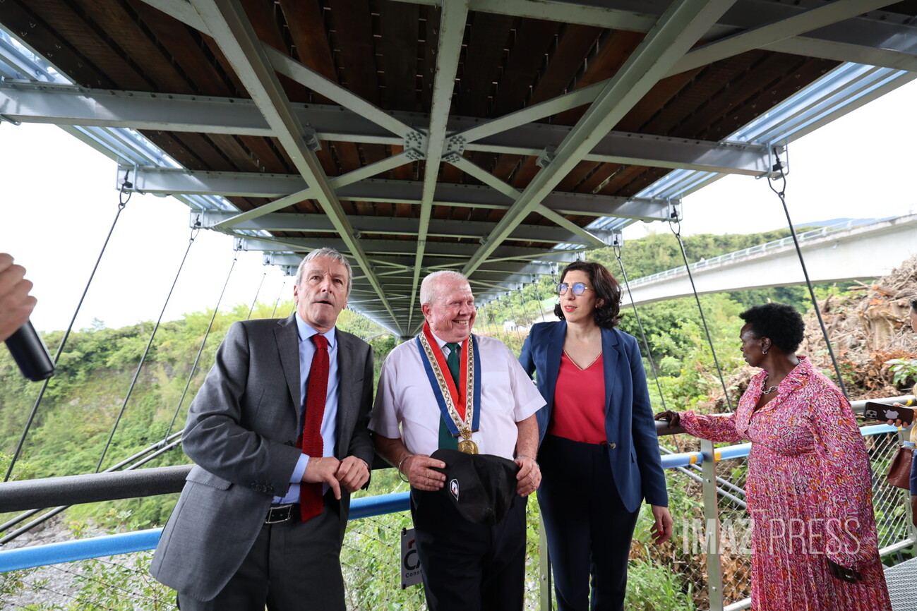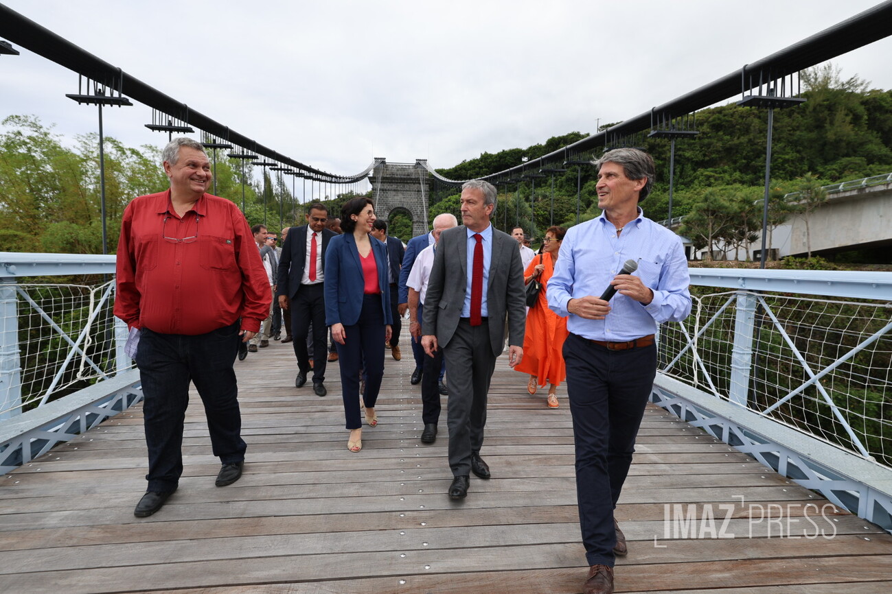 Autre temps fort, la visite de fin de travaux de restauration du pont suspendu de la rivière de l'est. Un pont en travaux depuis deux ans qui vient d'être inauguré, en présence de la présidente de Région, Huguette Bello et de Michel Vergoz, maire de Sainte-Rose.
