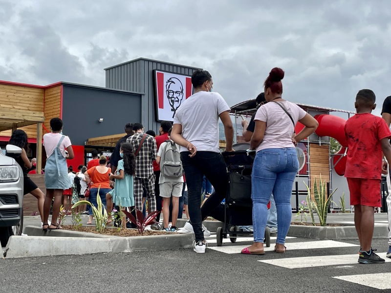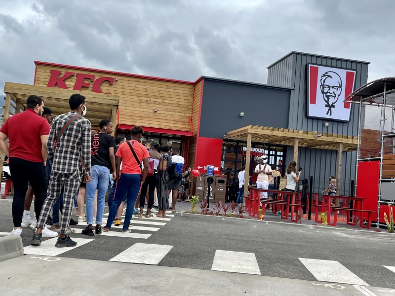 Alors que le nouveau restaurant KFC du Port ouvre ses portes ce mercredi 10 novembre 2021, de gros embouteillages se sont formés dans le secteur. Une ruée au poulet frit qui était prévisible, alors que de très nombreuses personnes ont fait part de leur engouement à l'annonce de l'ouverture de l'enseigne américaine. Nous sommes en live (Photo mm/www.ipreunion.com)