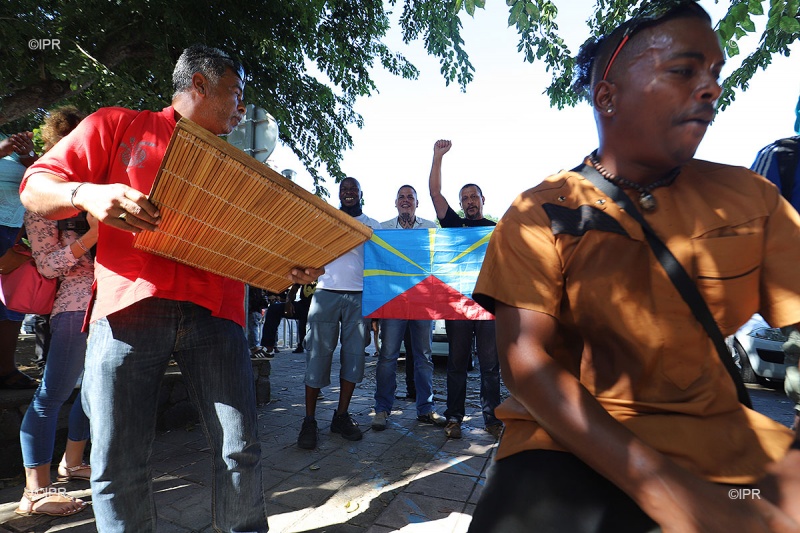 Devant le palais de justice, quelques musiciens n'ont pas hésité à jouer du maloya. Une façon, pour eux, de soutenir les membres du collectif KURR qui devaient être jugés ce mardi 15 mai.