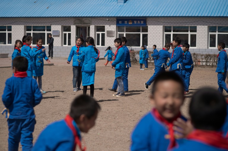 A l'extérieur de l'école, un groupe d'enfants vêtus d'un uniforme bleu peine à se remémorer le mot mandchou pour dire "au revoir". "Pour être honnête, on parle mieux anglais", confesse l'un d'eux en chinois.