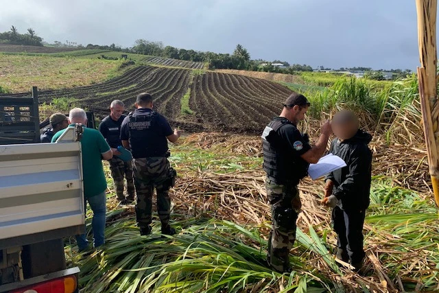 Le vendredi 16 septembre 2022, les gendarmes de la Communautés de brigades (COB) de Saint-Joseph, assistés de l'inspection du travail ont pu contrôler à Petit Île, des coupeurs de cannes. Malheureusement pour les agriculteurs, plusieurs infractions ont été relevées, dont du travail dissimulé. (Photo : Gendarmerie)