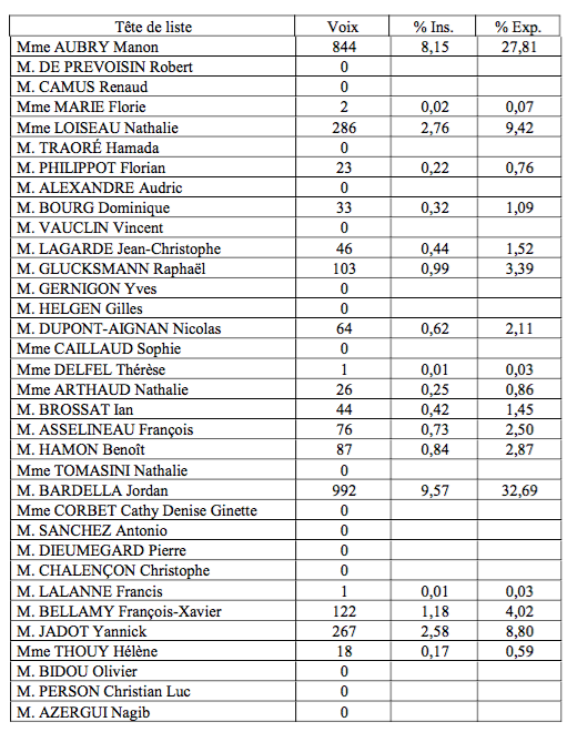 • Guy Hadji (Alliance écologiste indépendante) : 0,03 %