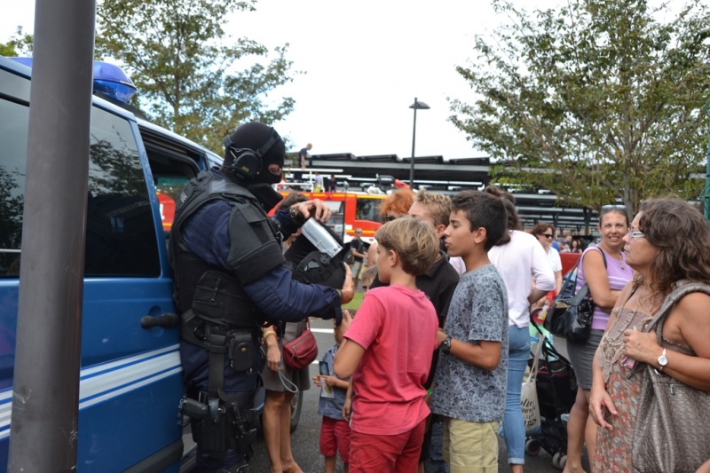 Des ados qui essayent des équipements militaires, d'autres qui s'informent sur la cybercriminalité, ou encore des enfants qui grimpent sur les motos des policiers. Cet après-midi, c'était opération séduction pour les forces de l'ordre, avec comme point d'orgue des interventions plus vraies que nature, rythmée par les applaudissements du public et quelques cris d'enfants, effrayés par les faux coups de feux.