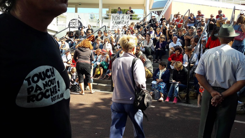 Ce samedi 17 septembre 2016 , le collectif Touch' pa nout roche organisait une réunion d'information concernant l'enquête publique en cours sur la future carrière de Bois-Blanc. L'objectif: rappeler aux citoyens que "tous les jours, dans chaque mairie, vous pouvez consulter tranquillement le dossier et écrire votre avis sur le registre. Même le samedi matin ! Même anonymement".